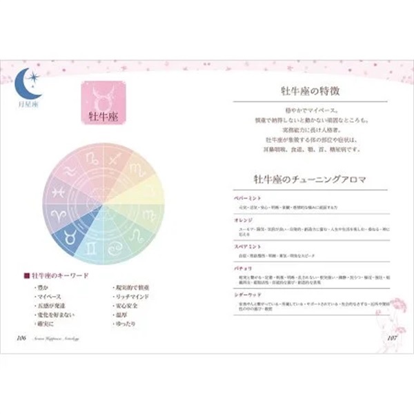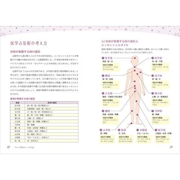 本書は、「日本エッセンシャルオイルスタイリスト協会」会長理事である柳原いづみ先生を著者に迎え、エッセンシャルオイルと占星学を組み合わせた「日本エッセンシャルスアストロロジー協会」代表を務めるJulia☆先生の監修のもと、西洋占星学の基本や、古来から伝わる「医学占星術」の考え方に基づいたエッセンシャルオイルの使い方をお伝えしています。