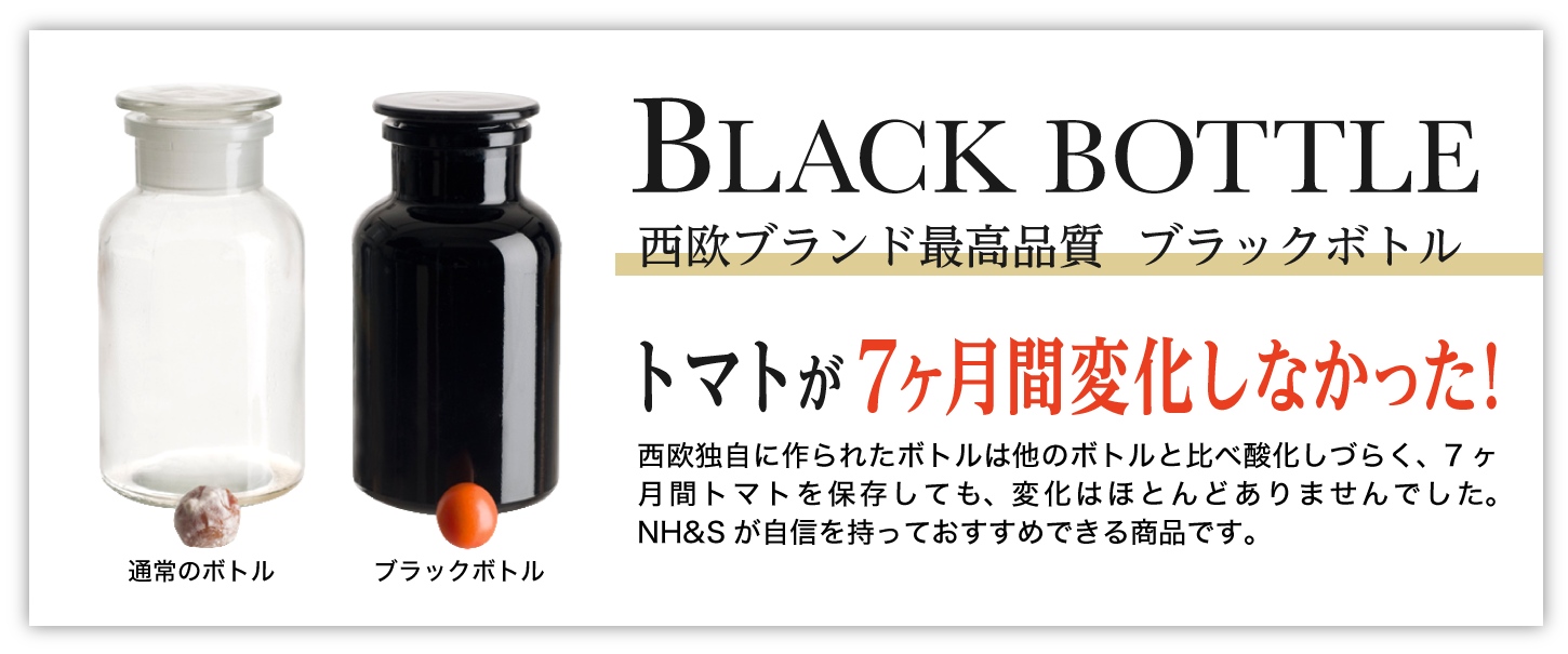 西洋独自に作られたボトルは 他のボトルと比べて酸化しにくく、 7か月間トマトを保存しても、変化はほとんどありませんでした。 自信をもってオススメできる商品です。 驚異の最高品質 関連商品→ ブラックシリーズ