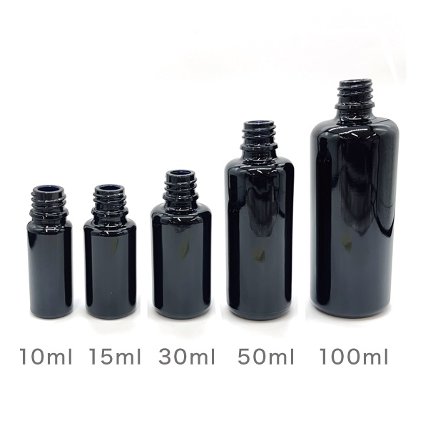 漆黒がキレイなボトル。 クォーツから作った非常に特殊なガラスを使用し デリケートなエッセンシャルオイルを保護します。 光にさらされることによる損傷を阻止し、 その結果、貯蔵寿命と鮮度を大幅に延長します。 可視光の完全なスペクトルを遮断し、 耐久性と効力を延長する光線のみを取り込む 自然フィルターとして機能する驚異のガラス。 同時に、特定のセグメントが紫外線および赤外線の スペクトル範囲の放射線を透過することを可能にします。 この独自の組み合わせにより、通常は可視光によって加速される 老化および劣化プロセスに対する最適な保護が提供されます。 (小)10ml、15ml、(小)30ml、50ml、100mlとサイズも各種揃っています。 他のブラックシリーズと合わせて使用するのも統一感が出て、素敵ですね。