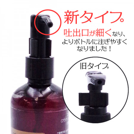 吐出口が従来のものより細くなり、ボトルに入れやすくなりました。