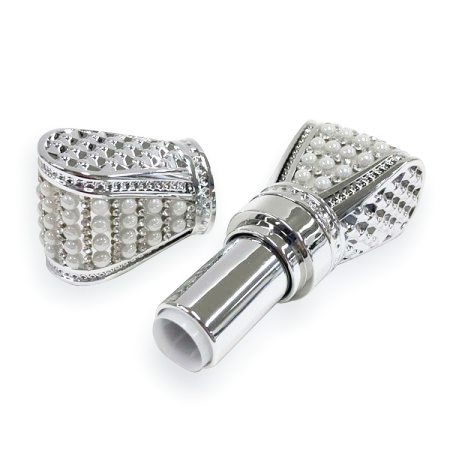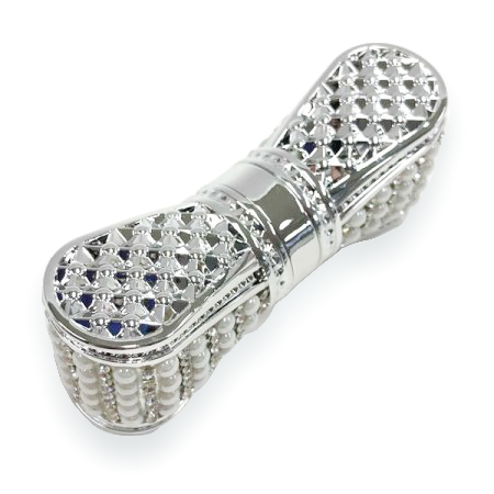 パールとラインストーンがきらめく、可愛いリボン型のリップケース。