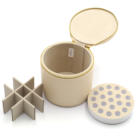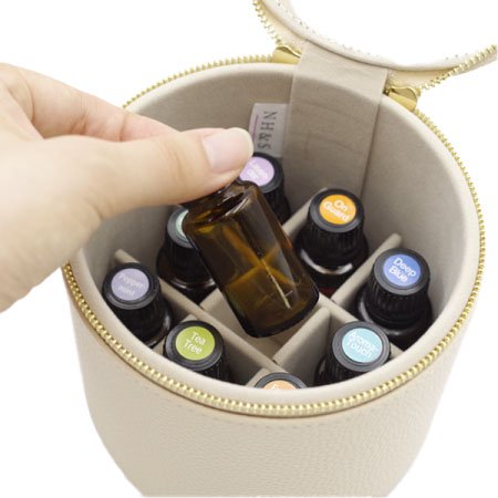 1ml〜3mlまでの小分けビンが20本、5mL・15mLのボトルが9本も入るNH&Sオリジナルのアロマポーチです。 上段には小分けビンが20本、下には15ml・5mlのオイルが9本入り、オイルの持ち運びにとっても便利なポーチです。 中の仕切りは取り外せるため、コスメのポーチとして利用してもOK。 使い方はあなた次第です!! →アロマキャップシールを利用すれば、さらに中身がわかりやすく便利に!