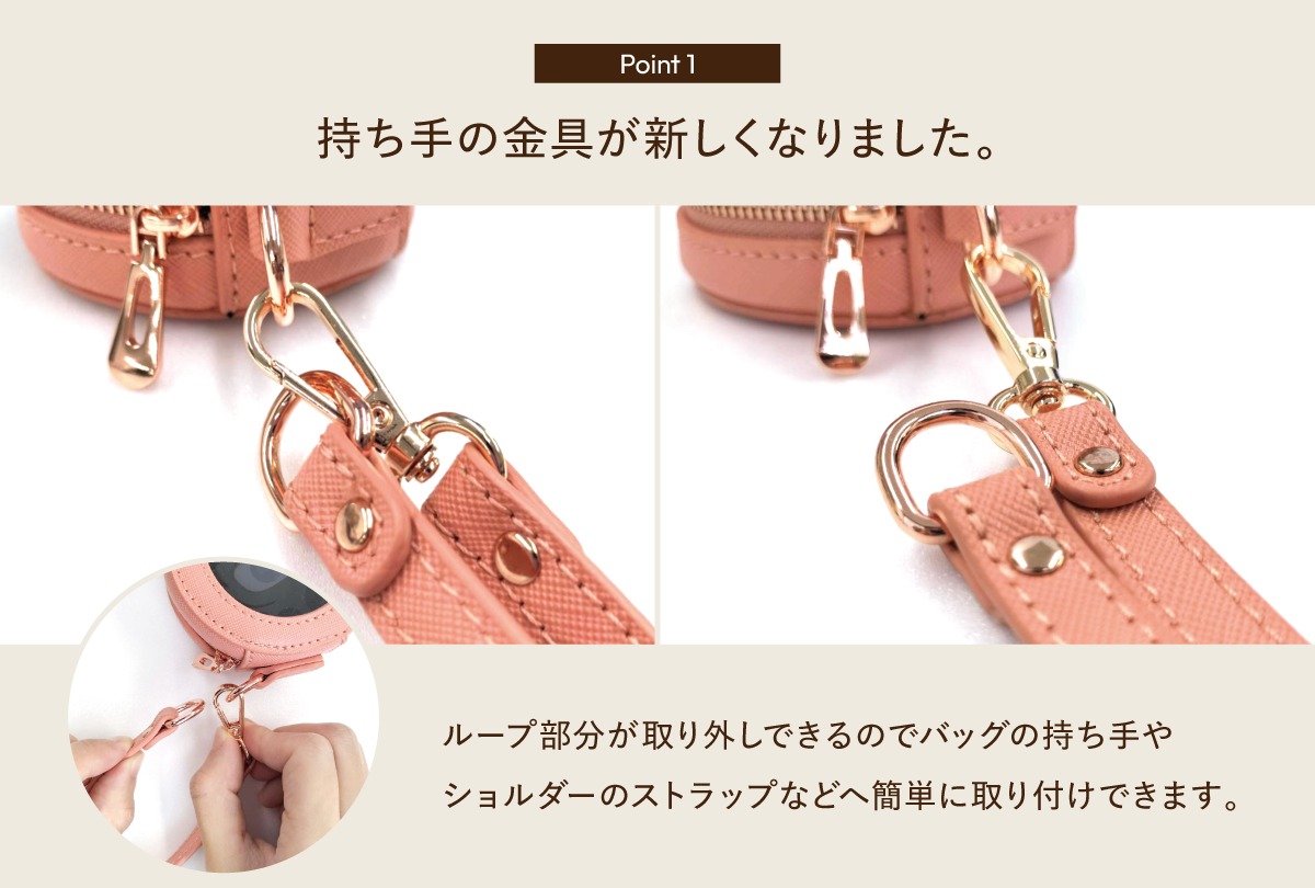本体仕様 本体サイズ(約):直径87mm × 高さ51mm 対応ボトルサイズ(約):直径15mm × 高さ40mm以下 (1〜3mLサイズの小分けビンを収納できます。) ※対応するボトルはこちら ストラップ長(約):145mm ※小分けビンは付属しておりません。 ※エッセンシャルオイルが付着するとシミや色落ちの原因となりますのでご注意ください。 ※画像はイメージです。仕様・詳細デザインは変更になる場合がございます。