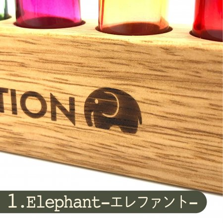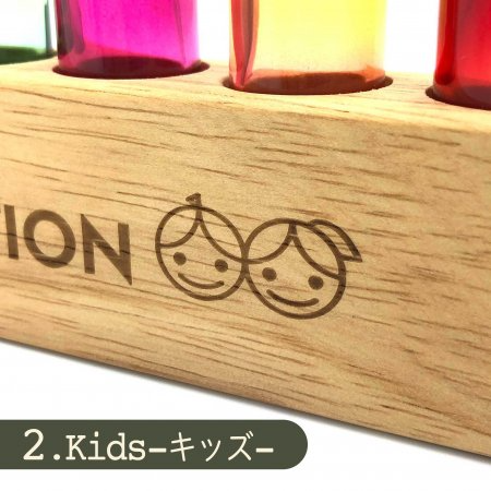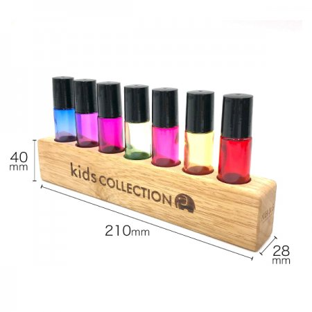 子どもたち向けの7本のオイルコレクションが収まるスタンド