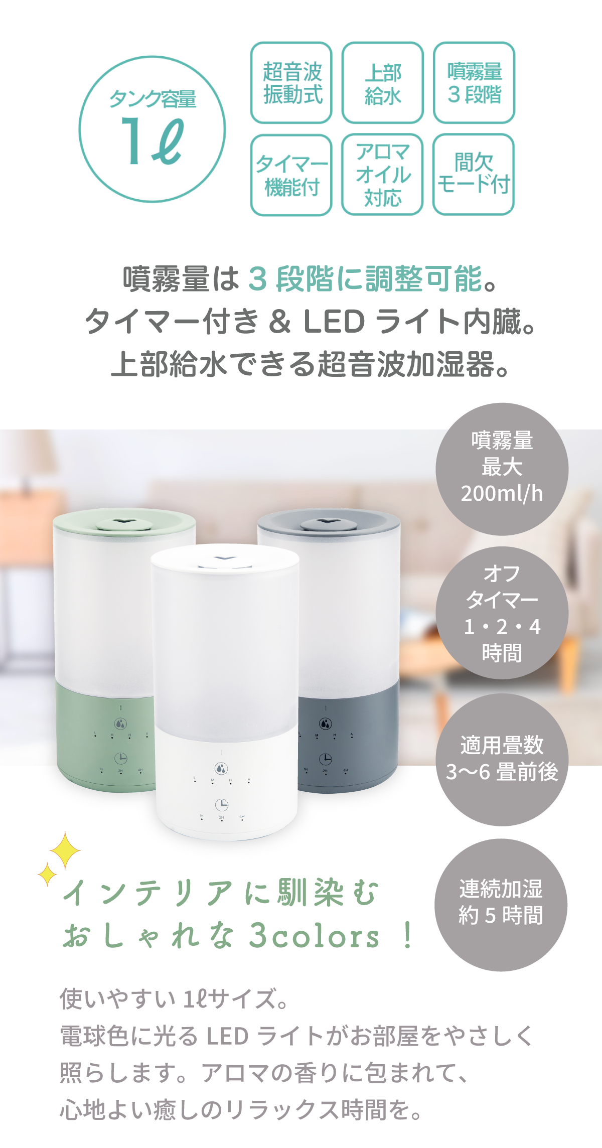 超音波を起こし、その振動で水面から微細な霧を発生させる仕組みの加湿器です。