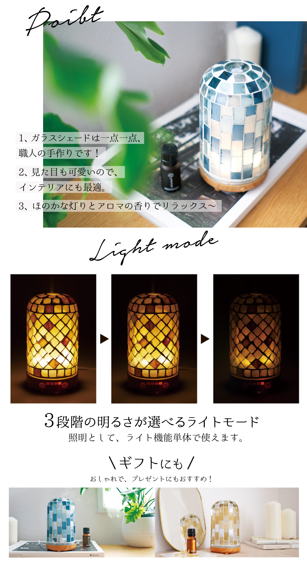 明るさが調整できるアロマライト付きディフューザー、おしゃれでインテリアにも最適!