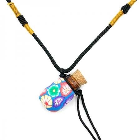 アロマを入れて楽しむ、カラフルな花柄のネックレス