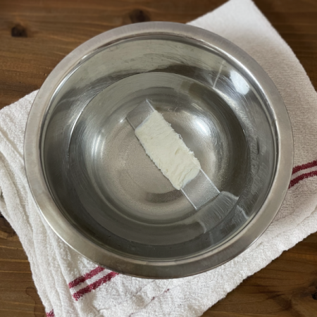 水または、ぬるま湯に30分ほどつけて塩抜きをします。