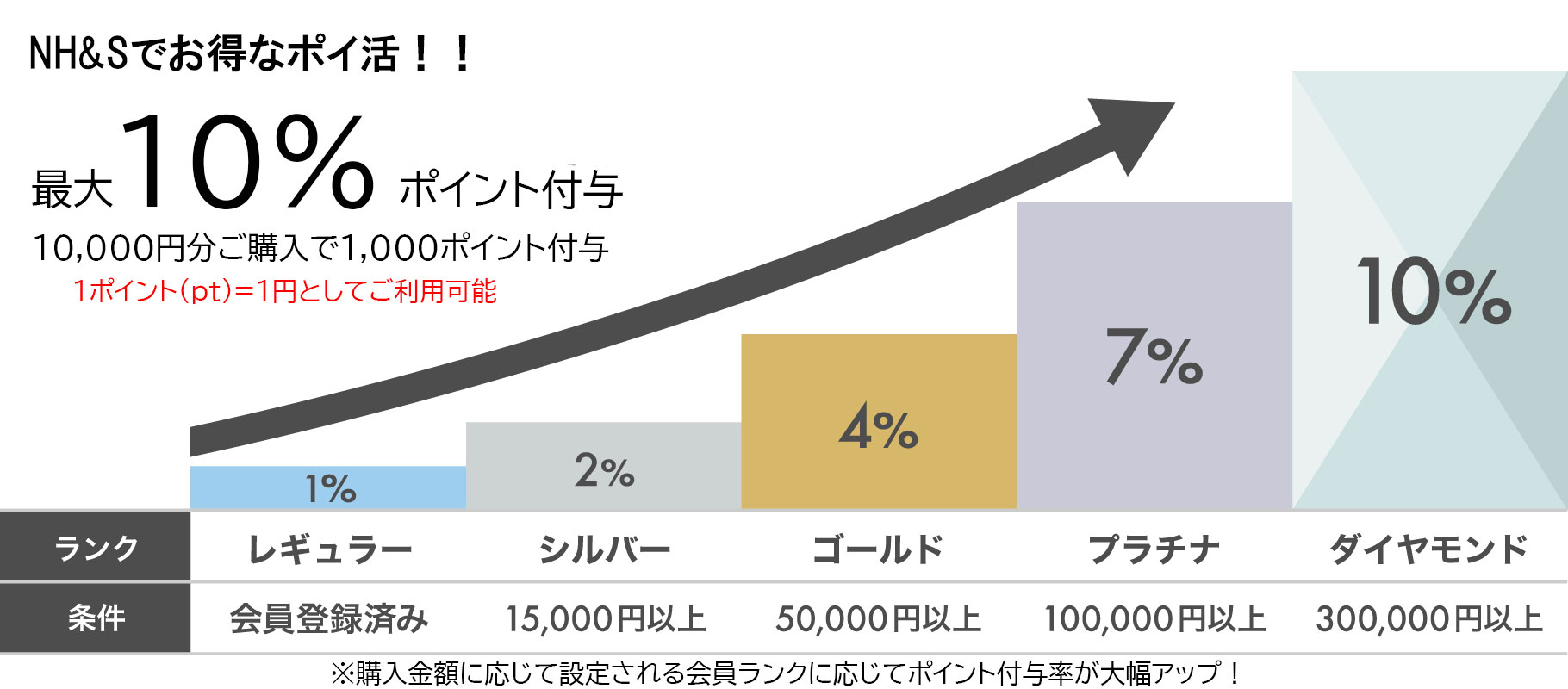 当サイトでは、ご購入金額に応じて会員ランクを設定し、ポイント還元率を優遇いたします。