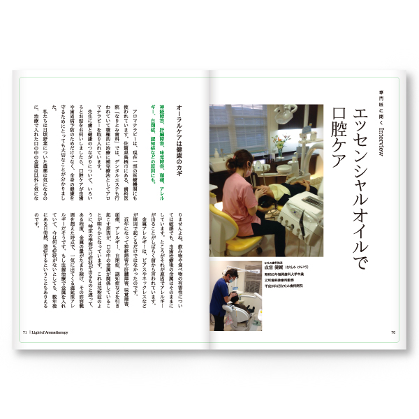 同時に海外のエッセンシャルオイルのスペシャリストたちとの出会いから、日本になかったセラピーを国内に取り入れ、医療機関・Yoga・ローフード・ビジネスなど、幅広い分野にアロマテラピーを浸透させてきた。