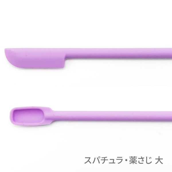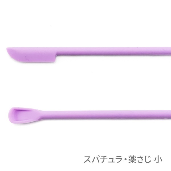 反対側にはサイズごとに形状が異なる薬さじが付いているので、