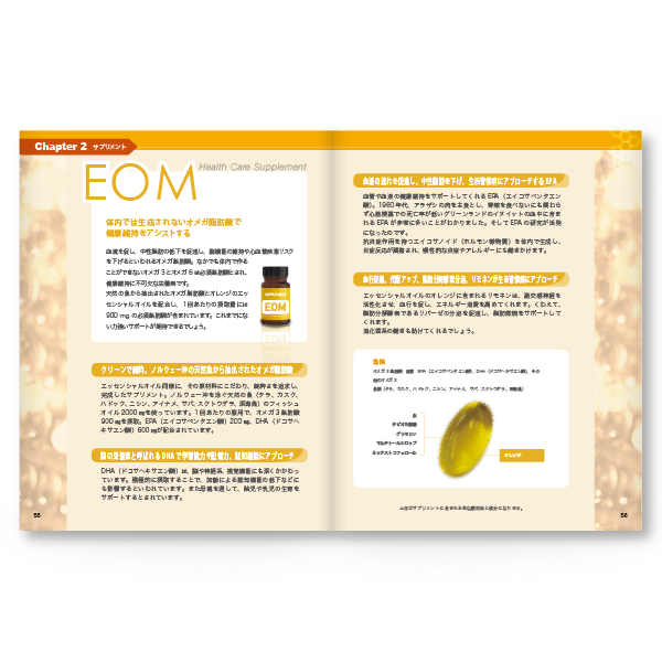 1回あたりの摂取量には900 mg の必須脂肪酸が含まれるEOM。